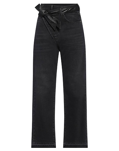 Jeans mit weitem Hosenbein, Denim, Kunstleder, Délavé-Effekt, einfarbig, Brand Logo, Colored Wash, hohe Taille, Gürtelschlaufen, Comfort fit, Knopfverschluss, viele Taschen, Maschinenwäsche, nicht Bleichen, Trockner ungeeignet