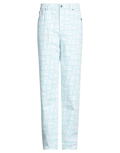 Tapered Jeans, Denim, zweifarbiger Print, Brand Logo, Light Wash, hohe Taille, Taille mit Gummiband, Regular fit, Knopfverschluss, Reißverschluss, Fünf Taschen, Maschinenwäsche, nicht Bleichen, Trockner ungeeignet