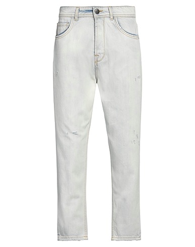 Tapered Jeans, Denim, In Distressed-Optik, einfarbig, Brand Logo, Light Wash, Regular fit, Knopfverschluss, Fünf Taschen, Maschinenwäsche oder Reinigung, nicht Bleichen, Trockner ungeeignet, Cropped