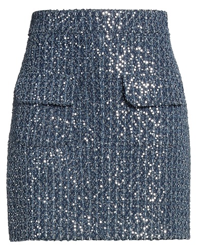 Rock mit Pailletten, Tuch, Dennim-Effekt, Einfarbig mit Applikationen, Pailletten, Dark Wash, gefüttert, Reißverschluss, viele Taschen, Handwäsche oder Trockenreinigung, nicht Bleichen, Trockner ungeeignet, nicht bügeln, Das ideale Outfit für Ihre Partys, das Stil, Eleganz und einen Hauch von Glamour vereint