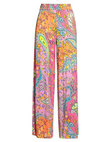 Hose mit ausgestelltem Bein, Jersey, Paisley-Print, Blumenmuster, Brand Logo, hohe Taille, Taille mit Gummiband, Regular fit, Ohne Taschen, Stretch, Handwäsche oder Trockenreinigung, nicht Bleichen, Trockner ungeeignet