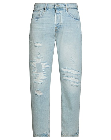 Tapered Jeans, Denim, Délavé-Effekt, In Distressed-Optik, einfarbig, Brand Logo, Light Wash, hohe Taille, Gürtelschlaufen, Regular fit, Verschluss mit verdeckten Knöpfen, Fünf Taschen, Maschinenwäsche oder Reinigung, nicht Bleichen, Trockner ungeeignet, Enthält nichttextile Teile tierischen Ursprungs.