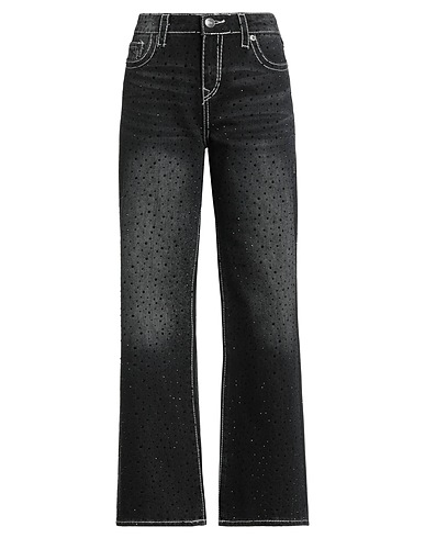 Jeans mit weitem Hosenbein, Denim, einfarbig, Kristalle, Colored Wash, hohe Taille, Gürtelschlaufen, Comfort fit, Reißverschluss, Knopfverschluss, Taschen, Handwäsche, nicht Bleichen, Trockner ungeeignet