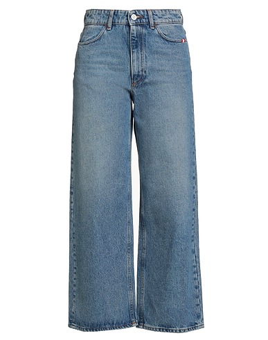 Jeans mit weitem Hosenbein, Denim, Délavé-Effekt, einfarbig, Bestickt, Brand Logo, Mittlere Waschung, hohe Taille, Gürtelschlaufen, Regular fit, 1 Knopf, Reißverschluss, Aufgesetzte Taschen, Leistentaschen, Handwäsche, nicht Bleichen, Trockner ungeeignet