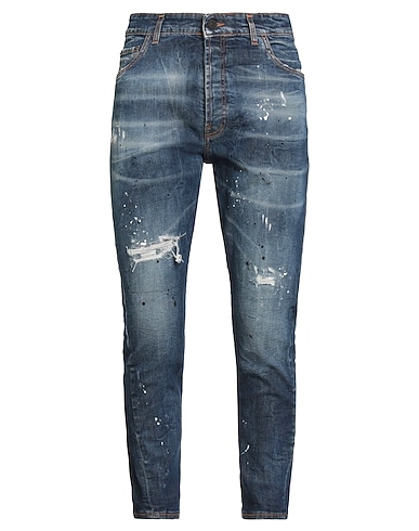 Tapered Jeans, Denim, In Distressed-Optik, Délavé-Effekt, Mit Stretch-Anteil, einfarbig, Brand Logo, Mittlere Waschung, hohe Taille, Regular fit, Knopfverschluss, Fünf Taschen, Maschinenwäsche, nicht Bleichen, Trockner ungeeignet
