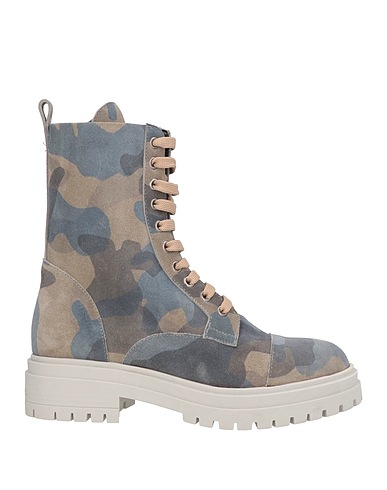 Combat Boots, Wildleder, Camouflagemuster, Brand Logo, Innenfutter aus Leder, runde Spitze, Blockabsatz, robuste Sohle, Enthält nichttextile Teile tierischen Ursprungs.