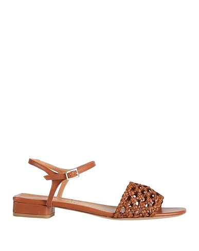 Sandalen mit knöchelriemchen, Kunstleder, einfarbig, ohne Applikationen, Innenfutter aus Leder, Knöchelriemen mit Schnalle, quadratische Spitze, ohne Absatz, Leder/Gummisohle, Enthält nichttextile Teile tierischen Ursprungs.