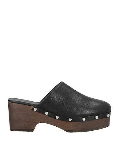 Clogs, Leder, einfarbig, Verziert, runde Spitze, Blockabsatz, Gummisohle, Innenfutter aus Leder, Enthält nichttextile Teile tierischen Ursprungs.