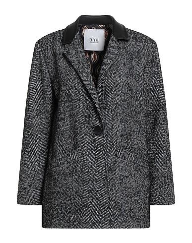 Einreihiger Blazer, Flanell, Fischgrätmuster, Details aus beschichtetem Material, Reverskragen, lange Ärmel, gefüttert, Leistentaschen, Maschinenwäsche oder Reinigung, nicht Bleichen, Trockner ungeeignet