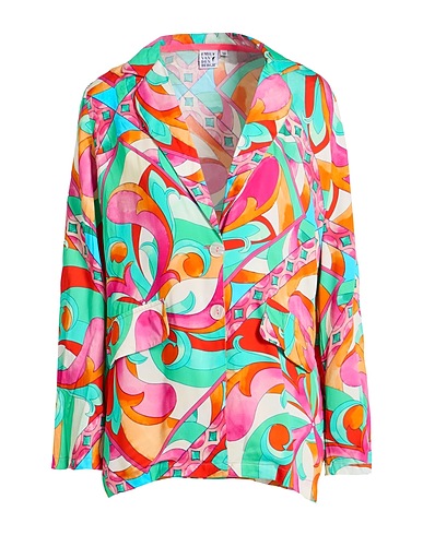 Einreihiger Blazer, Satin, Multicolor-Print, ohne Applikationen, Reverskragen, lange Ärmel, ungefüttert, Knopfverschluss, Dekorative Taschen, Maschinenwäsche oder Reinigung, nicht Bleichen, Trockner ungeeignet