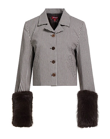 Jacke, Jersey, Mit Stretch-Anteil, abnehmbare Applikation, Karomuster, Reverskragen, Einreiher, lange Ärmel, gefüttert, Knopfverschluss, viele Taschen, Chemische Reinigung