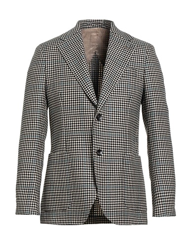 Einreihiger Blazer, Wolle, Hahnentritt, Brand Logo, Reverskragen, lange Ärmel, Sportmanschetten mit Knöpfen, Innen teilweise gefüttert, Knopfverschluss, Aufgesetzte Taschen, Einfache Tasche, Zwei Öffnungen hinten, Chemische Reinigung, nicht Bleichen, Trockner ungeeignet