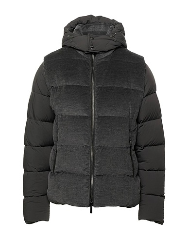 Feincord, Rippenmuster, abnehmbare Applikation, zweifarbiger Print, Rollkragen, Einreiher, lange Ärmel, Daunenfutter, Reißverschluss, viele Taschen, Enthält nichttextile Teile tierischen Ursprungs.