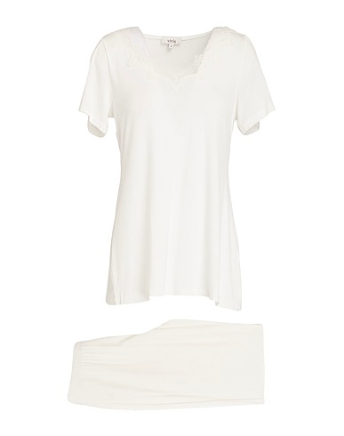 Jersey, Spitze, ohne Applikationen, einfarbig, V-Ausschnitt, kurze Ärmel, Stretch, Pyjamaset