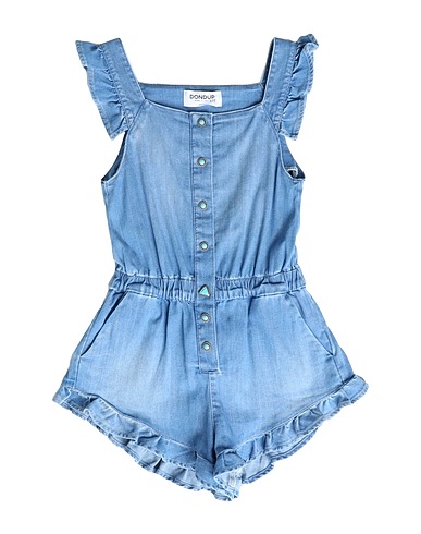 Denim, Délavé-Effekt, einfarbig, Rüschen, Mittlere Waschung, quadratischer Ausschnitt, ärmellos, Verschluss mit Druckknöpfen, viele Taschen, Stretch, mit 30° waschen, nicht Bleichen, Trockner ungeeignet, mit Max 110° bügeln