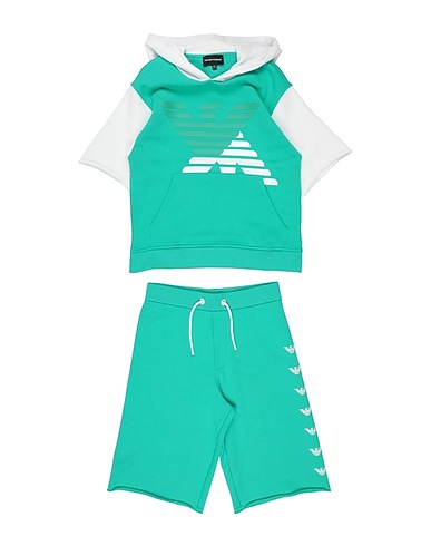 Co-ord Set mit kurzer Hose, Frottee, zweifarbiger Print, Brand Logo, Kapuzenkragen, kurze Ärmel, ungefüttert, Maschinenwäsche, nicht Bleichen, Trockner ungeeignet