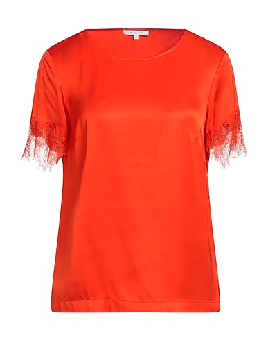 top, satin, lace, plain colour, no appliqués, crewneck, short sleeves, unlined