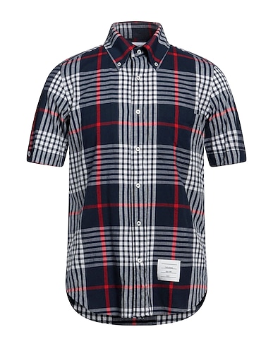 woven, brand logo, tartan pattern, button-down collar, short sleeves, button fastenings, single chest pocket, regular-fit shirt