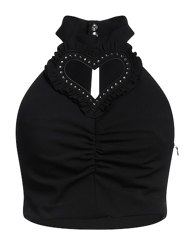 crepe, embellished, gathered, plain colour with appliqués, halterneck, sleeveless, zip fastening, without pockets, stretch, machine wash, do not bleach, do not tumble dry, crop top