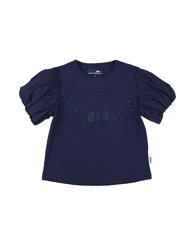 jersey, woven, crystals, brand logo, plain colour with appliqués, crewneck, short sleeves, without pockets, stretch, machine wash or dry clean, do not bleach, do not tumble dry