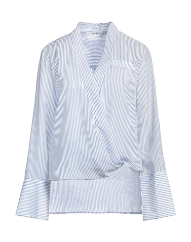 top, woven, striped, no appliqués, deep neckline, long sleeves, without pockets, machine wash or dry clean, do not bleach, do not tumble dry