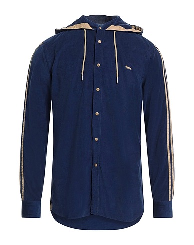 regular-fit shirt, corduroy, plain colour with appliqués, side seam stripes, embroidered logo, hooded, long sleeves, snap fastenings, hand wash or dry clean, do not bleach, do not tumble dry