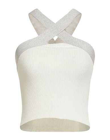 top, knitted, metallic, lightweight knit, two-tone, no appliqués, v-neck, sleeveless, hand wash or dry clean, do not bleach, do not tumble dry