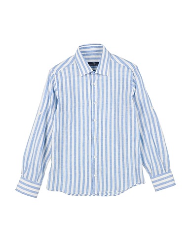 linen, striped, no appliqués, classic collar, long sleeves, buttoned cuffs, button fastenings, machine wash or dry clean, do not bleach, do not tumble dry