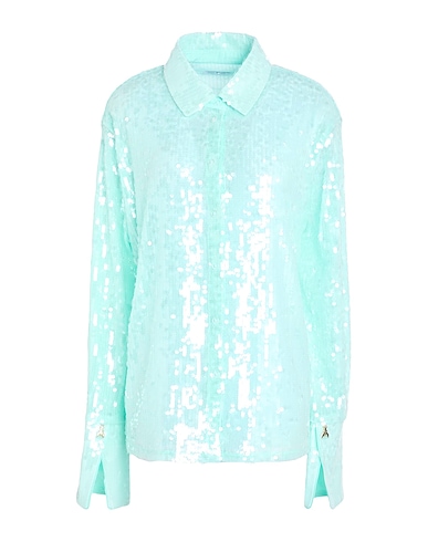 shirt, tulle, stretchy fabric, plain colour with appliqués, sequins, brand logo, classic collar, long sleeves, slit cuffs, button fastenings, do not wash, do not bleach, do not tumble dry, do not iron