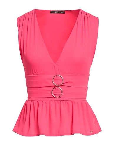 peplum top, crepe, plain colour with appliqués, buckle, v-neck, sleeveless