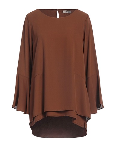 top, crepe, plain colour, no appliqués, crewneck, long sleeves, 1 button