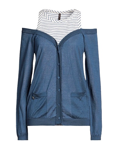knitted, jersey, lightweight knit, brand logo, stripes, two-tone, crewneck, long sleeves, button closing, multipockets