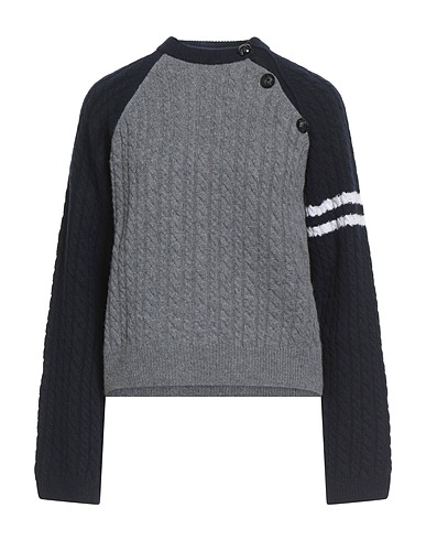 cable-knit, lightweight knit, embellished, two-tone, crewneck, long sleeves, without pockets, hand wash or dry clean, do not bleach, do not tumble dry, this brand runs large