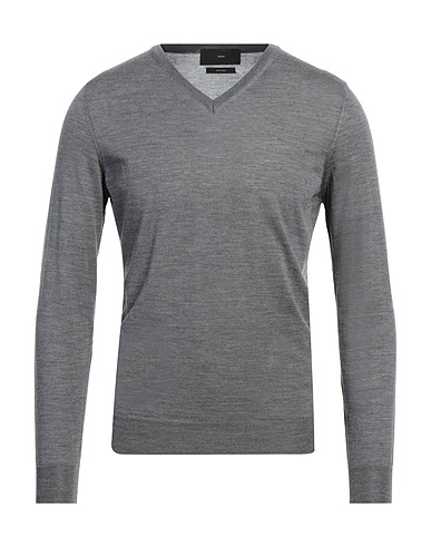 wool, lightweight knit, mélange, brand logo, v-neck, long sleeves, hand wash or dry clean, do not bleach, do not tumble dry