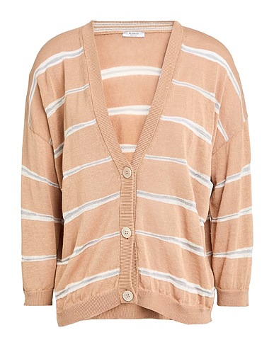knitted, metallic, lightweight knit, striped, no appliqués, 3/4 length sleeves, button fastenings, hand wash or dry clean, do not bleach, do not tumble dry, this brand runs small