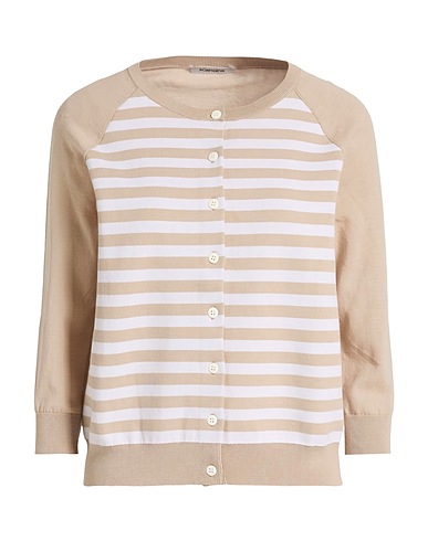 knitted, lightweight knit, no appliqués, striped, 3/4 length sleeves, button fastenings, machine wash or dry clean, do not bleach, do not tumble dry