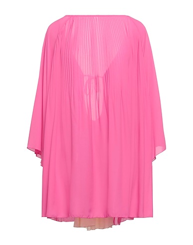 crepe, pleated, no appliqués, multicolour pattern, round collar, 3/4 length sleeves, kimono sleeves, unlined, no pockets, stretch, dress