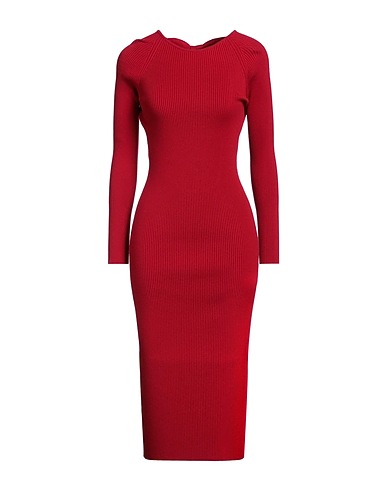 bodycon dress, knitted, ribbed, lightweight knit, plain colour, brand logo, crewneck, long sleeves, unlined, tie fastening, without pockets
