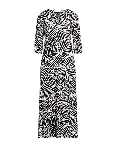 jersey, no appliqués, two-tone, crewneck, 3/4 length sleeves, unlined, no pockets, stretch, flared dress