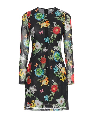 tulle, no appliqués, floral-print, crewneck, long sleeves, fully lined, zip fastening, hook fastenings, without pockets, stretch, dry clean, flared dress
