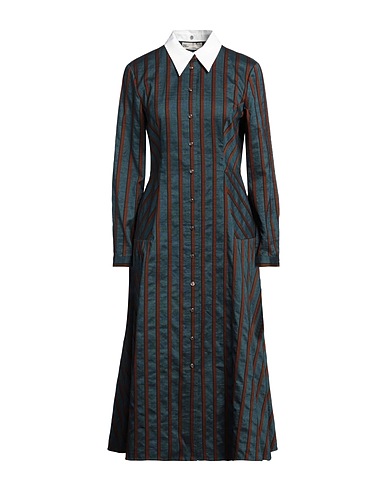 shirt dress, canvas, woven, striped, no appliqués, classic collar, long sleeves, buttoned cuffs, unlined, button fastenings, multipockets, contains non-textile parts of animal origin, dry clean, do not bleach, do not tumble dry