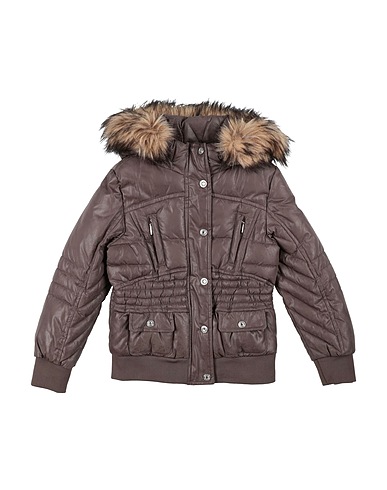shell, plush fabric, quilted, brand logo, gathered, knitted trims, plain colour with appliqués, detachable hood, single-breasted , long sleeves, synthetic filling, zip fastening, snap fastenings, multipockets, machine wash, do not bleach, do not tumble dry
