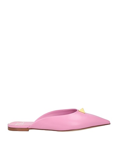 leather, studs, plain colour with appliqués, leather lining, pointed toe, flat, leather sole, contains non-textile parts of animal origin, mules