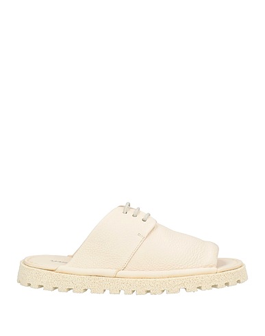 slide sandals, leather, plain colour, no appliqués, leather lining, round toe, flat, rubber sole, contains non-textile parts of animal origin, large sized