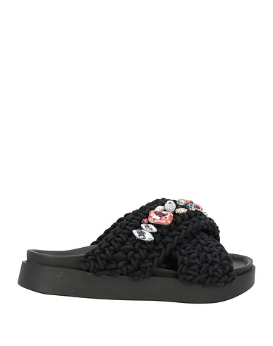 sandals, knitted, plain colour with appliqués, crystals, round toe, leather lining, rubber sole, contains non-textile parts of animal origin