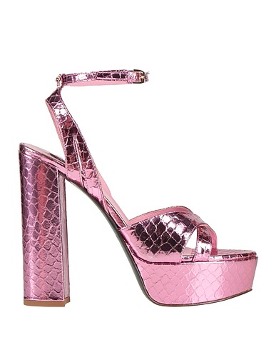 leather, crocodile print, laminated effect, no appliqués, plain colour, leather lining, buckle-fastening ankle strap, round toe, square heel, covered heel, leather sole, contains non-textile parts of animal origin, ankle strap sandals