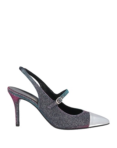 tulle, coated fabric, metallic, glitter, multicolour, leather lining, buckle fastening, elasticated inserts, pointed toe, spike heel, covered heel, leather sole, contains non-textile parts of animal origin, slingback pumps