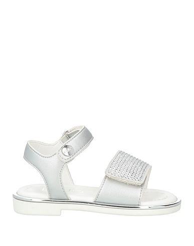open sandals, rubber, coated fabric, crystals, plain colour with appliqués, rubber lining, velcro fastening, round toe, flat, rubber cleated sole