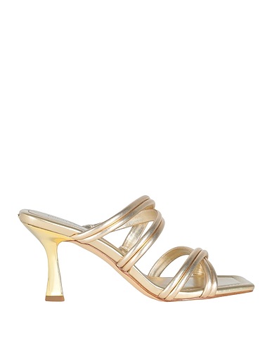 leather, metallic, brand logo, plain colour, fully lined, square toe, spool heel, rubber sole, contains non-textile parts of animal origin, sandals