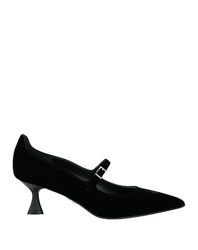 velvet, no appliqués, plain colour, leather lining, pointed toe, spool heel, leather sole, contains non-textile parts of animal origin, mary jane pumps